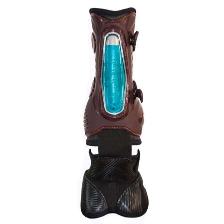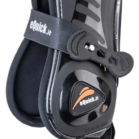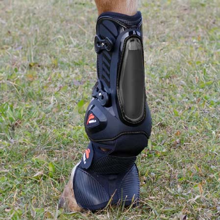 Los protectores Equick Eshock Overreach llevan una campana incorporada que cubre los talones del casco del caballo. Este modelo esta diseñado para aquellos caballos que siempre necesitan el uso de campanas para proteger el talón. Por lo que se refiere al protector esta diseñado con el sistema eFluidgel que es la combinación de gel y aire en burbujas para la absorción de posibles impactos. Aún llevando la campana incorporada este protector también le permite al caballo una completa libertad de movimientos en las extremidades. Todos los materiales utilizados en el Overreach son de alta calidad. De esta manera se asegura la fiabilidad, resistencia y comodidad.