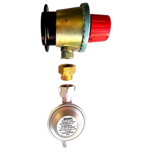 Adaptador que se utiliza para conectar el regulador de presión con conexión alemana a las botellas de gas de españa y otros países del mercado europeo (Bélgica, Inglaterra, Francia, Irlanda, Croacia, Letonia, Luxemburgo, Macedonia, Montenegro, Países Bajos, Suiza, Serbia, Eslovenia y la República Checa).