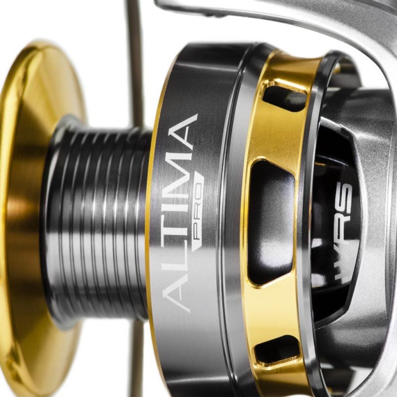 Altima Pro, reel robusto y compacto que garantiza más sensibilidad y comodidad a la hora de pescar. Su cuerpo y bobina están fabricados íntegramente en aluminio y su rotor es de grafito.