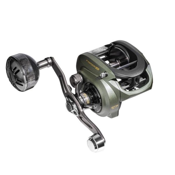 El reel de pesca Forza 400 está construido con un chasis y manivela lateral de aluminio, brindando durabilidad y resistencia durante la pesca. Su Super Drag está compuesto por tres discos de carbono, dos de acero inoxidable y uno de duraluminio, que ofrecen una potencia de frenado superior.