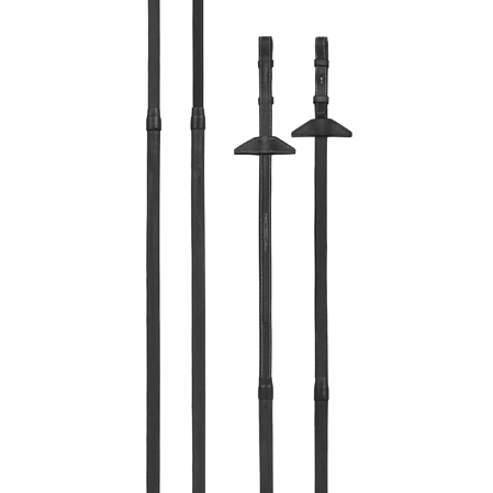 Las riendas goma Prestige E144 tienen el contraste de la costura en hilo de color blanco. Las E144 son unas riendas de goma usadas más a menudo en la disciplina del salto de obstáculos. Llevan el tope para las tijerillas.