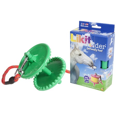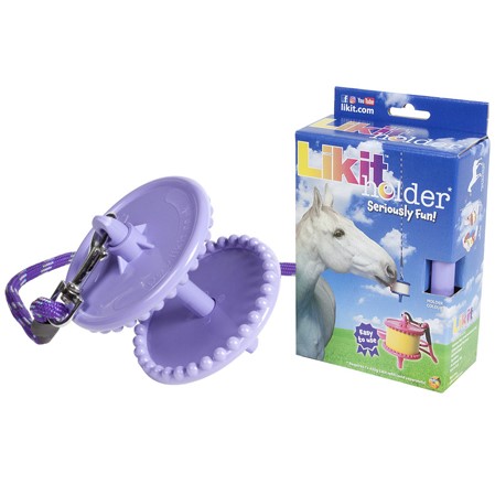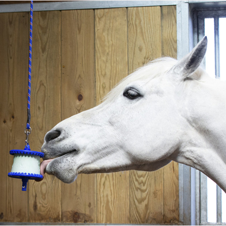 Soporte Likit muy práctico para colgar una piedra Likit de 650 gramos. Las piedras Likit tienen diferentes sabores y el caballo las va lamiendo. Este es un soporte que se instala en la cuadra, normalmente se cuelga del techo. Una cuerda (que viene incluida con el soporte) cuelga del techo y el caballo se entretiene. Muchos caballos cogen vicios en su box y es interesante entretenerlos. La piedra no solo la lamen sin no que también juegan con ella.