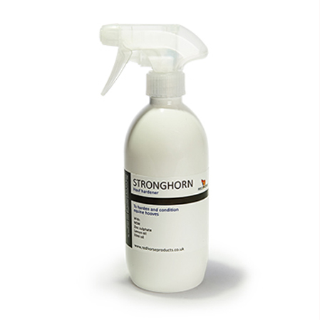 Primero limpiar el casco a fondo. Debemos agitar el envase antes de usar el producto. A continuación rociar Stronghorn por la parte inferior del casco y alrededor de los clavos. Intentar evitar que el producto penetre en la ranilla. Aplicar de forma diaria hasta que se muestre una mejora sustancial. Después la aplicación debe ser semanal. Para obtener mejores resultados una vez aplicado el producto dejar secar y no trabajar al caballo.