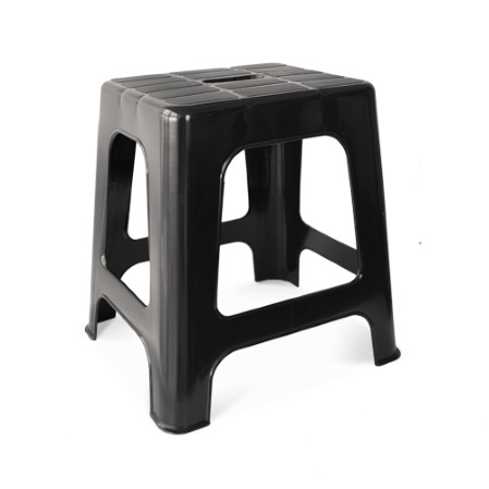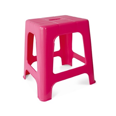 Este es un taburete fabricado en plástico duro y resistente capaz de soportar el peso de una persona.