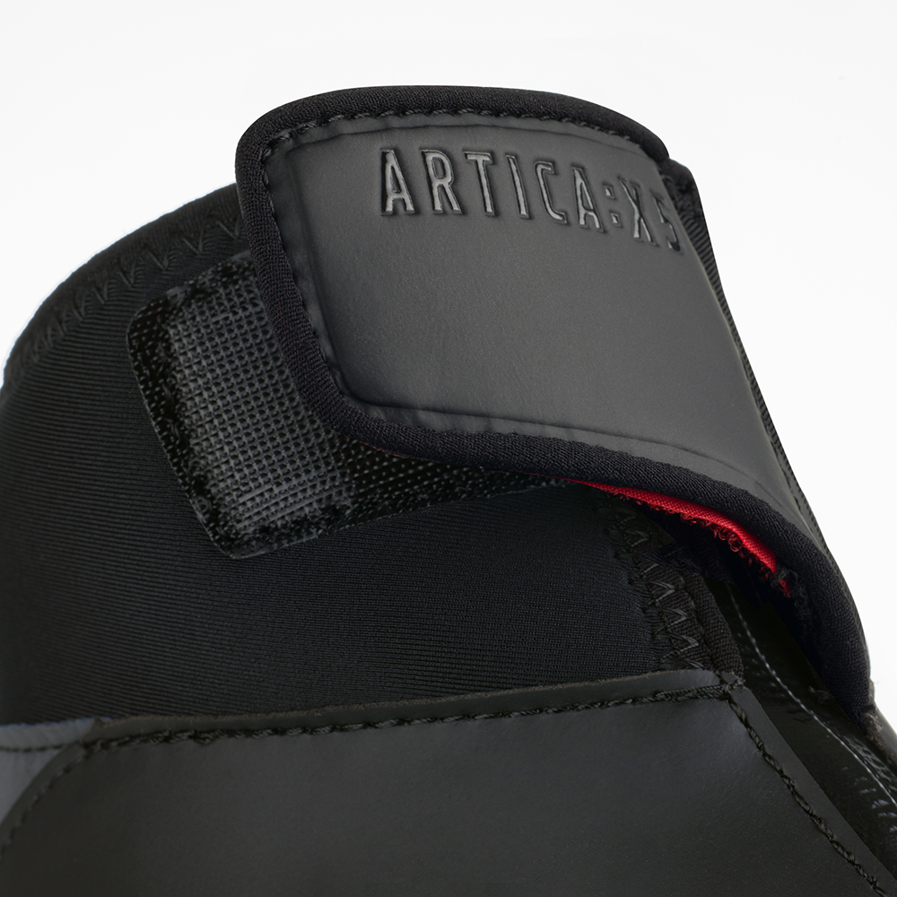 El sistema de cordones de velocidad internos del Artica X5 hace que el ajuste a la forma de su pie sea rápido y preciso. Su carcasa reforzada con microtex ofrece soporte estructurado, mientras que la unión sin costuras en el exterior proporciona protección contra impactos de bajo perfil y la membrana transpirable maximiza el flujo de aire. El exterior impermeable es fácil de limpiar y la cremallera impermeable garantiza que incluso el peor clima se mantenga fuera.